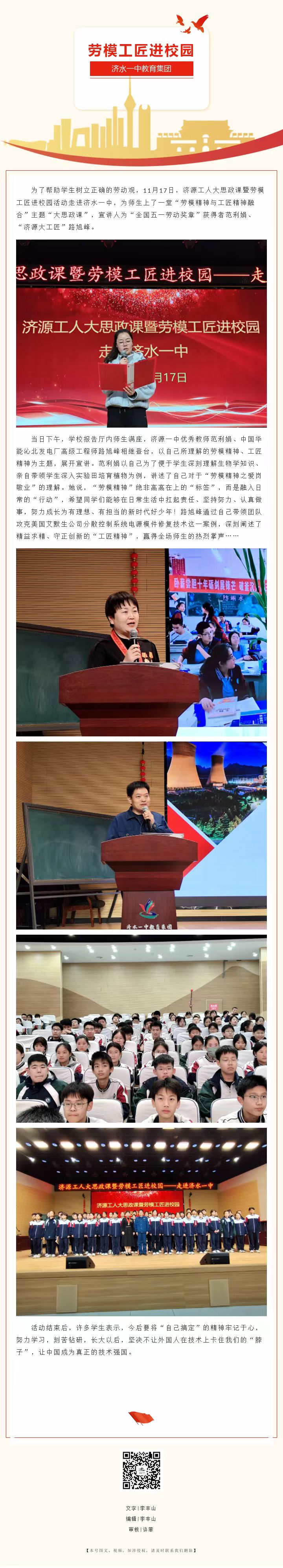 济源工人大思政课暨劳模工匠进校园活动走进济水一中