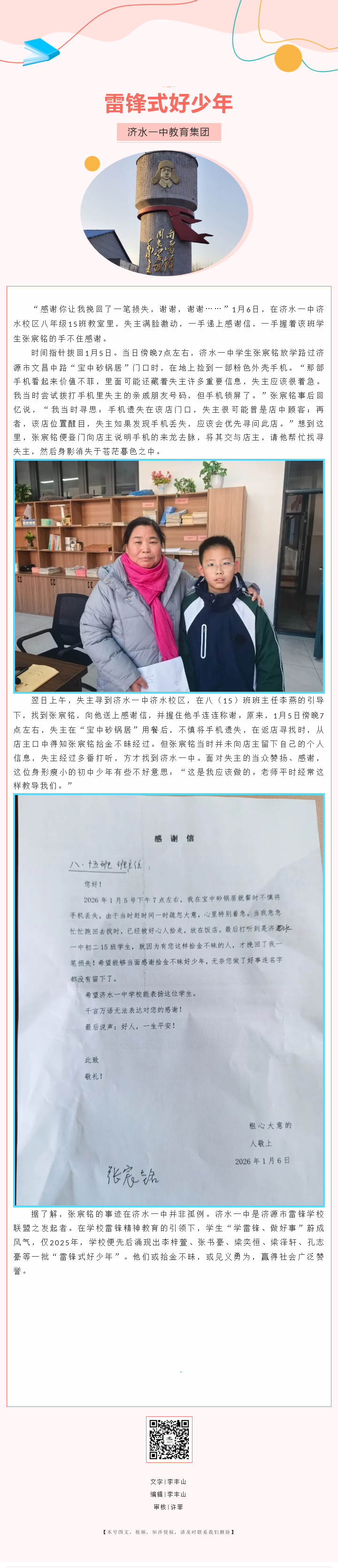 文昌路畔的“明灯”:济水一中学子拾金不昧记