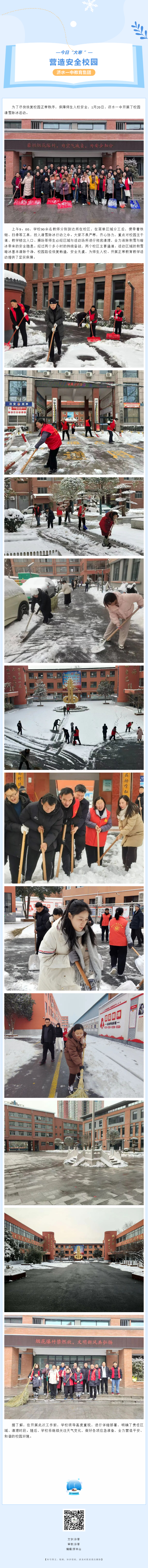 济水一中开展校园清雪除冰活动
